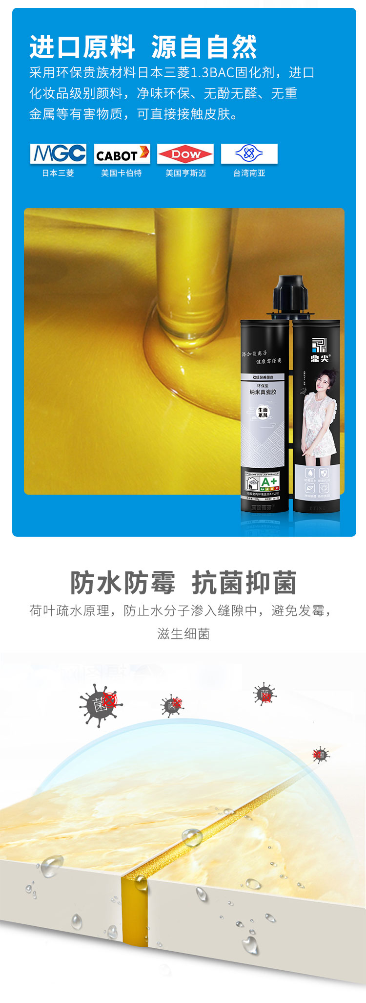 不含壬基酚 美縫更健康,耐老化耐黃變,性能更強(qiáng)