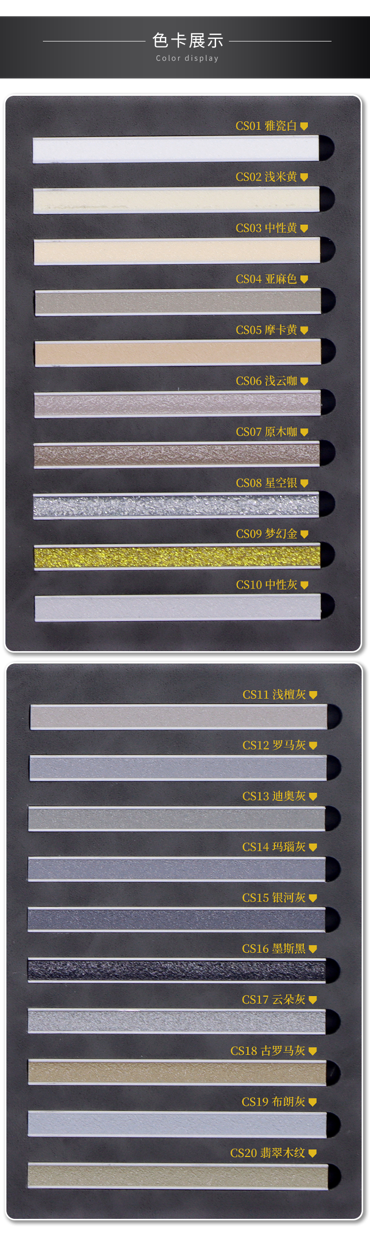 易途彩砂色澤柔和、啞光,砂質(zhì)感強細(xì)膩,厚實耐刮耐磨;安全環(huán)保,不含甲醛、