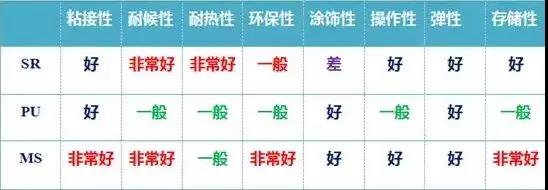 幾種密封膠的綜合性能對比