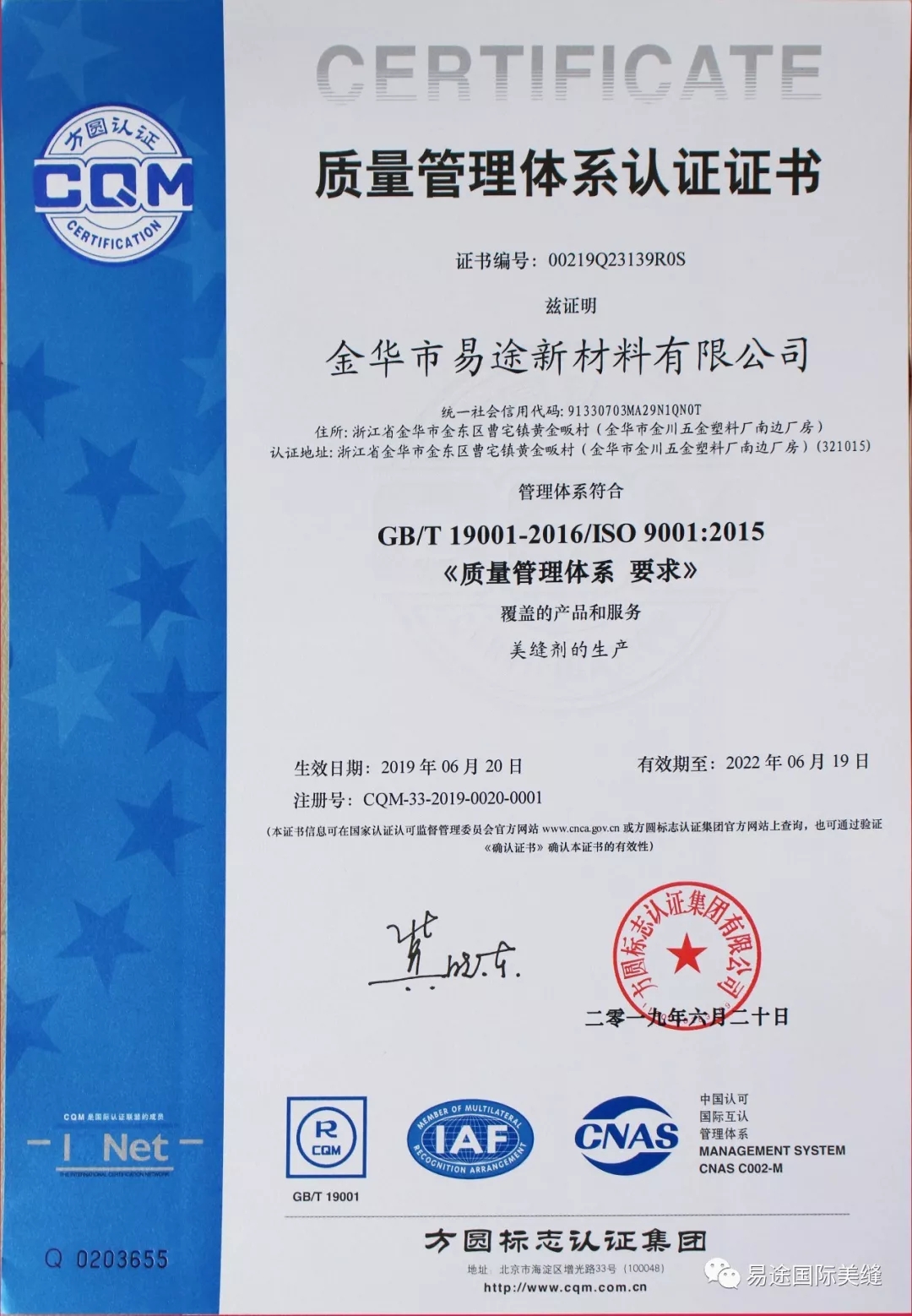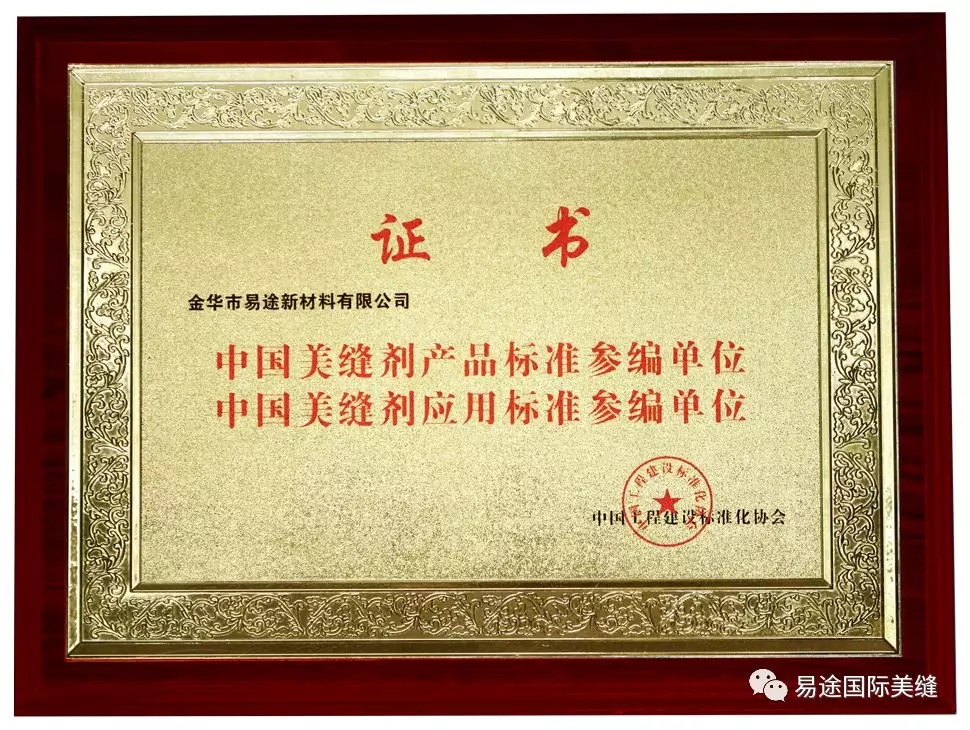 一個優(yōu)秀的企業(yè)必定擁有被其行業(yè)所認可的證明。易途國際美縫產(chǎn)品以其安全、環(huán)保、施工便捷等優(yōu)異特點備受行業(yè)認可,除了通過ISO9001認證之外,更被推選為美縫劑應用技術規(guī)程和美縫劑產(chǎn)品標準的雙標參編單位。