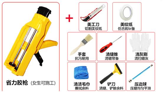 清縫錐、美工刀、毛刷、吸塵器、膠槍、美縫蠟、壓縫球 、刮板、鏟刀等 清縫