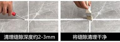 先用美工刀將瓷磚縫隙中及兩邊的殘留物(如玻璃膠、白水泥)剔出。再用抹布、毛刷或吸塵器將瓷磚縫隙和縫隙邊緣清理干凈,使瓷磚縫隙干燥無雜物。 打膠