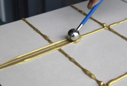 用壓縫工具壓縫,盡量平滑均勻地用力,十字縫的時候從中間向外壓,打膠完畢約5-10分鐘內(nèi)用壓縫球?qū)⒚揽p劑壓平。(壓縫球越大縫隙弧度越小,反之弧度越大) 鏟膠