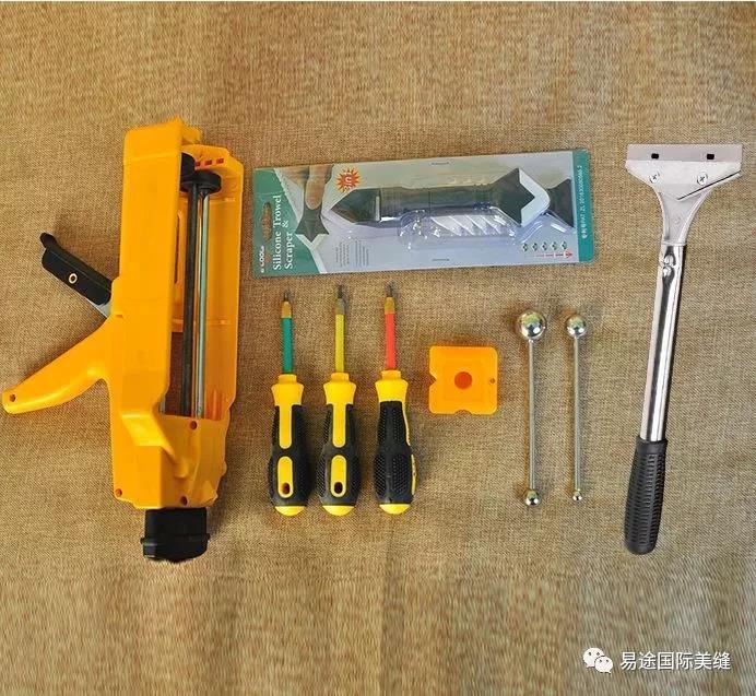 3 施工工具缺一不可 施工之前帶好所有的使用工具,保持干凈整潔有條理,給業(yè)主帶來(lái)一種干凈負(fù)責(zé)不隨意的好印象。一般情況下,美縫工具主要包括清縫工具、美工刀、刮片、美紋紙、鏟刀、美縫蠟、海綿、助力膠槍等。